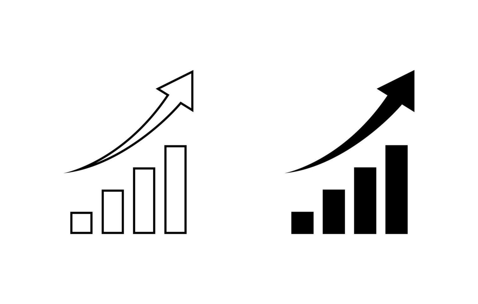 Increase bar chart icon generic style. Growing graph arrow concept Pro Vector