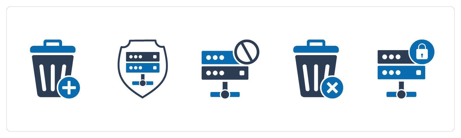 A set of 5 business icons as trash, server security, server prohibited Pro Vector