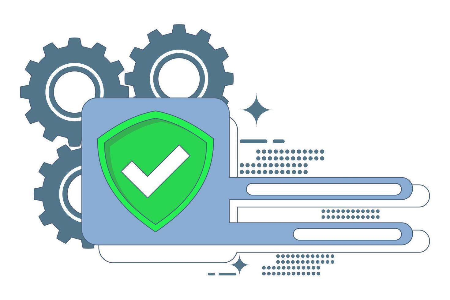 Device security concept with password access. Analog window with login screen and shield with lock on it. The system requires a password for access. Illustration. Pro Vector