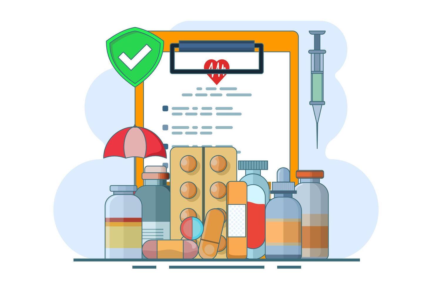 Healthcare concept explained through attractive visuals on the theme of co-payments, coverage and deductibles, featuring interaction with financial. Pro Vector