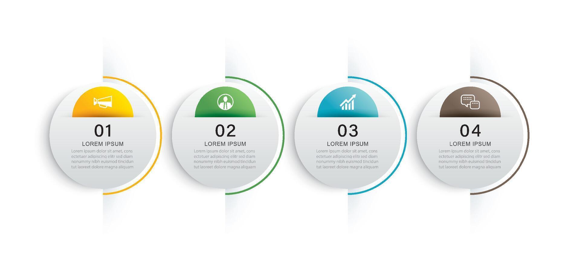 Infographics circle timeline with 4 number data template. Illustration business abstract background. Pro Vector