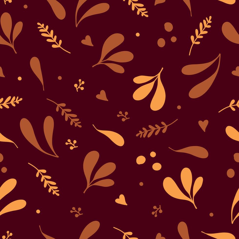Seamless autumn pattern in the form of a solid line of hand-drawn elements of flowers, leaves, branches. Pro Vector