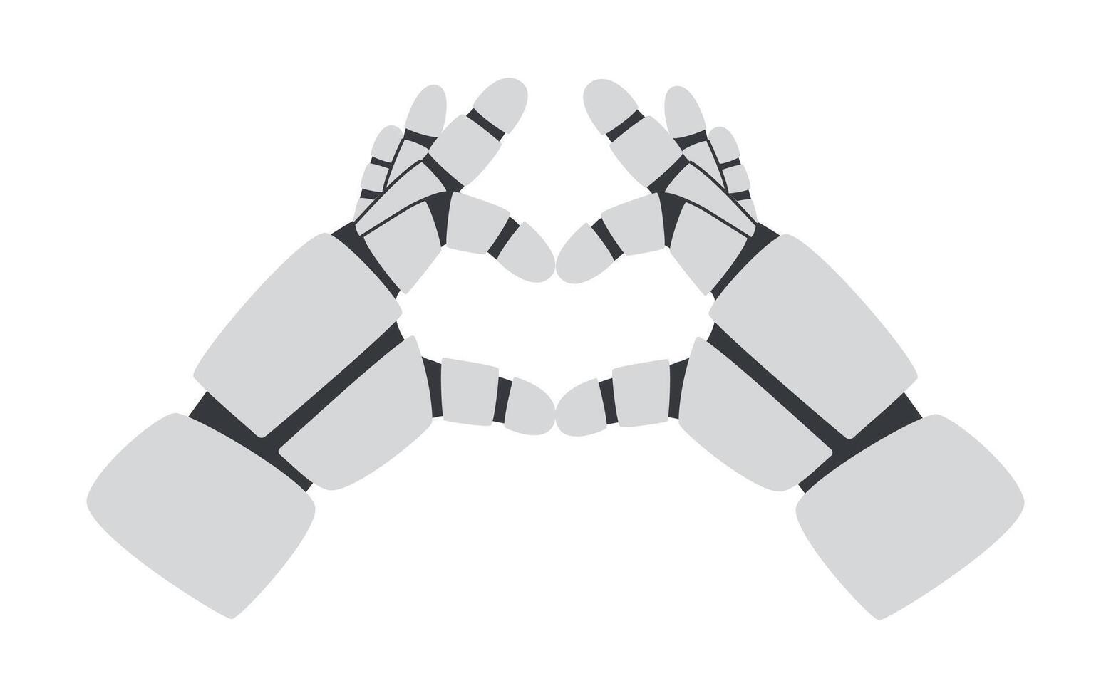 Technology concept. AI concept. Robots hands gesture showing a heart isolated on white background. Pro Vector