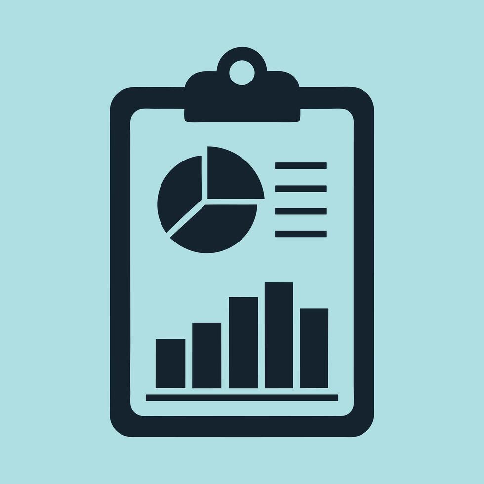 A Clipboard and Pi Bar Chart Graph of Business Sales Report Data Paper Flat Icon 2 Pro Vector
