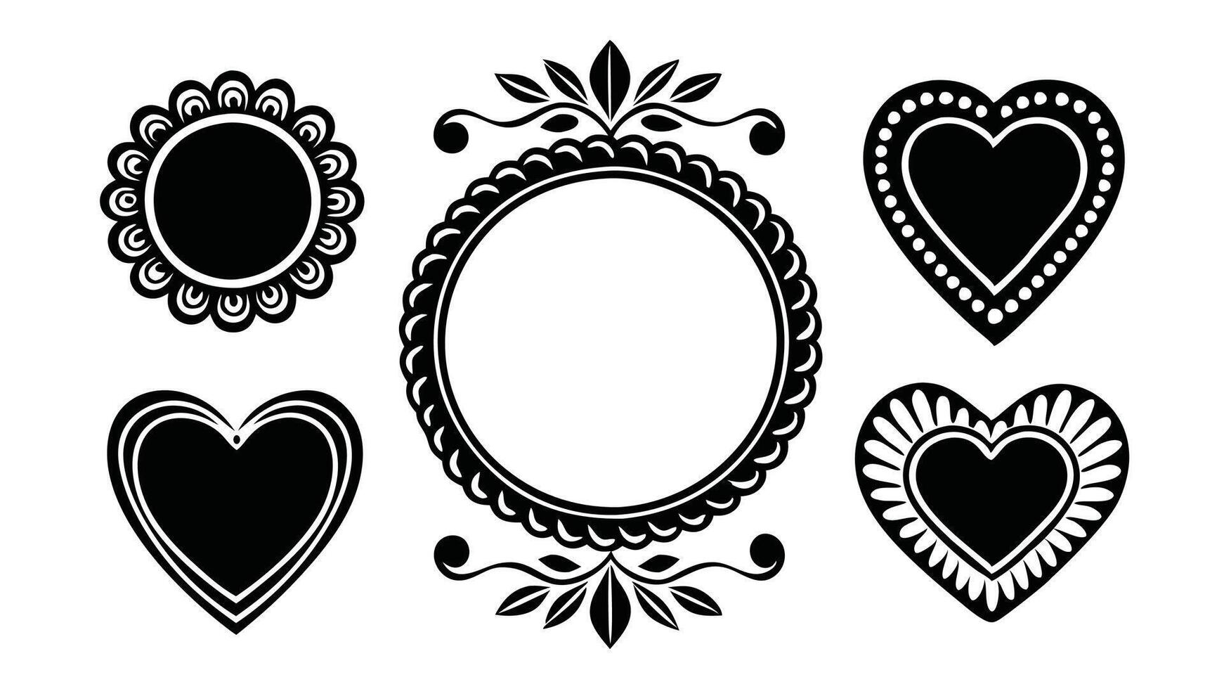Hand drawn set of simple frame and border with different shapes heart, square, oval. Cut isolated illustration on white background vector