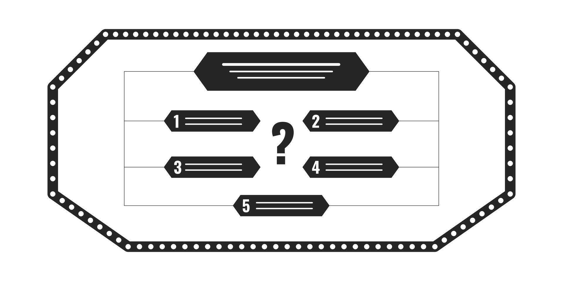 Quiz show display with question choices black and white 2D line object. Trivia competition screen isolated clip art outline item. Quest options answer. Monochromatic spot illustration Pro Vector