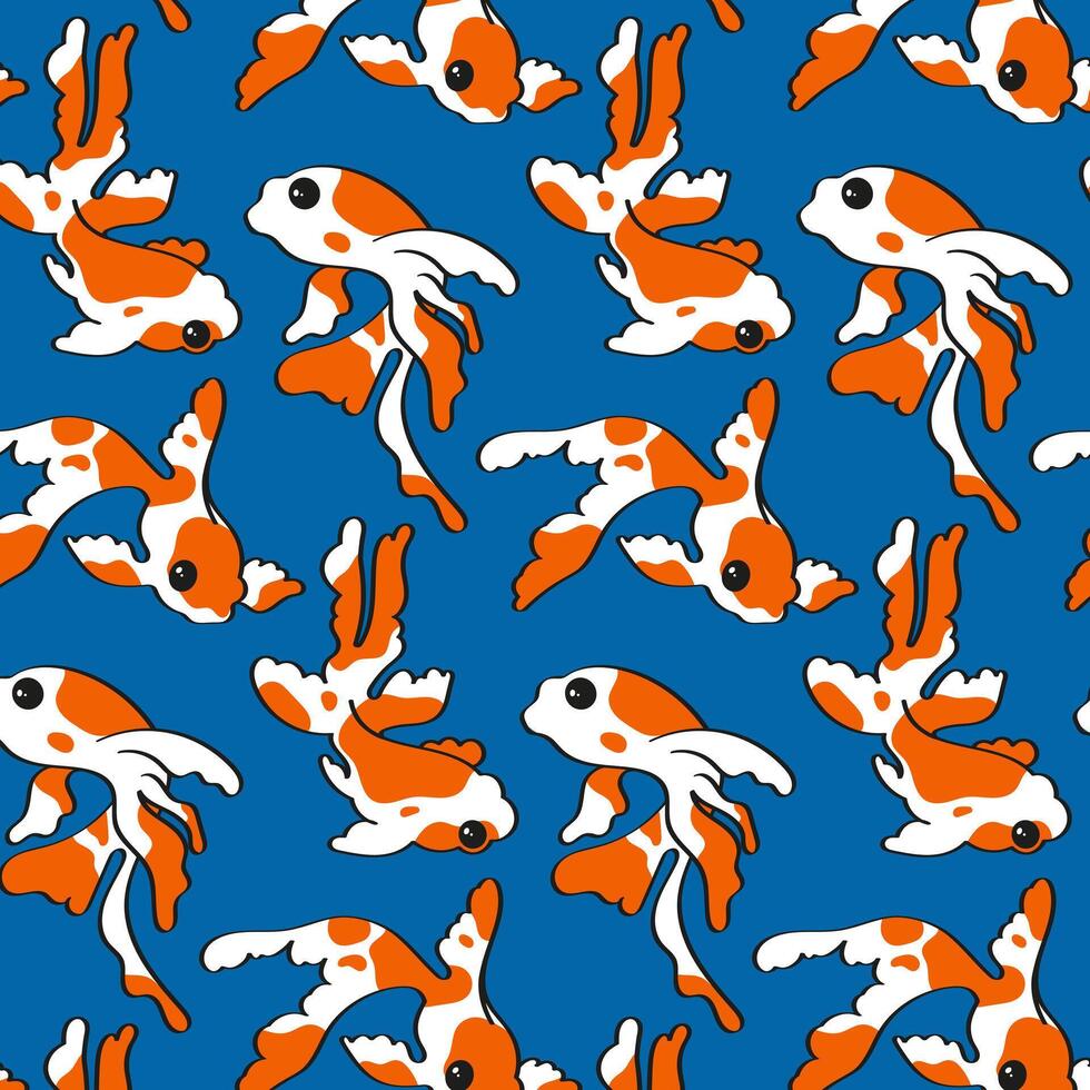Japanese Chinese goldfish. Seamless pattern. Background design. Repeating print Pro Vector