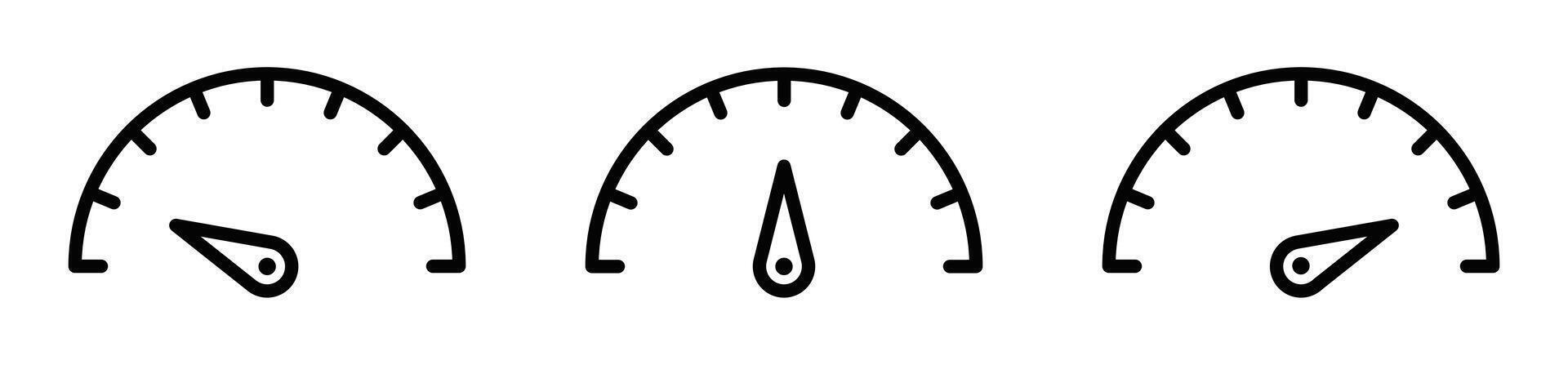 Set of three speedometer icons in minimalist style, symbolizing performance, speed, and measurement. Editable stroke. Pro Vector