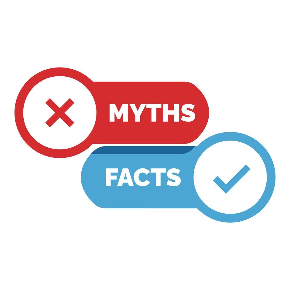 Myths versus facts red and blue buttons showing correct and wrong choices Pro Vector