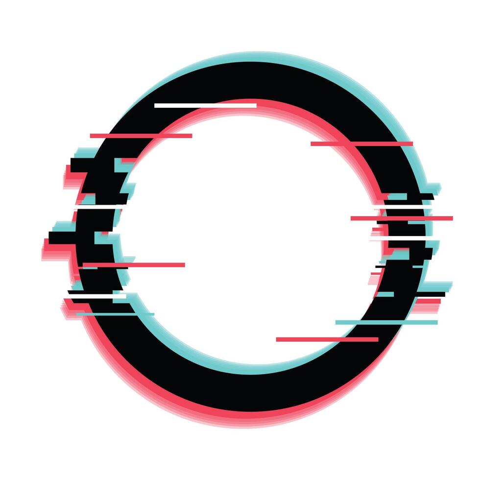 Black circle glitch effect with rgb displacement showing modern technology errors Pro Vector