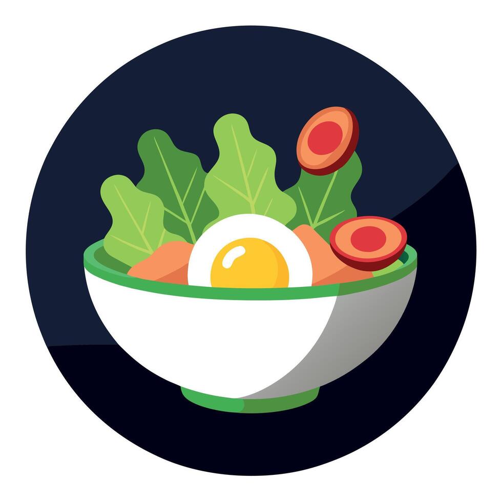 Caesar salad with egg and bacon in a bowl on a dark background Pro Vector