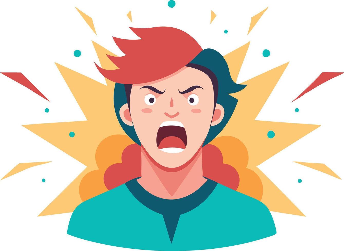Illustration of a person shouting with an angry expression and explosive background Pro Vector