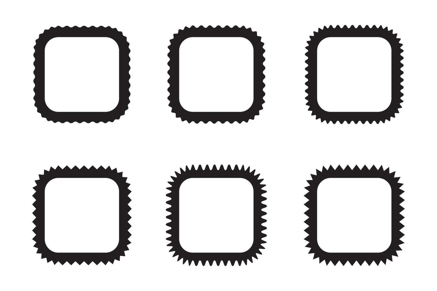 Wavy edge square stroke icon. set of 4 squared shapes with jagged edges. Isolated on a white background. Pro Vector