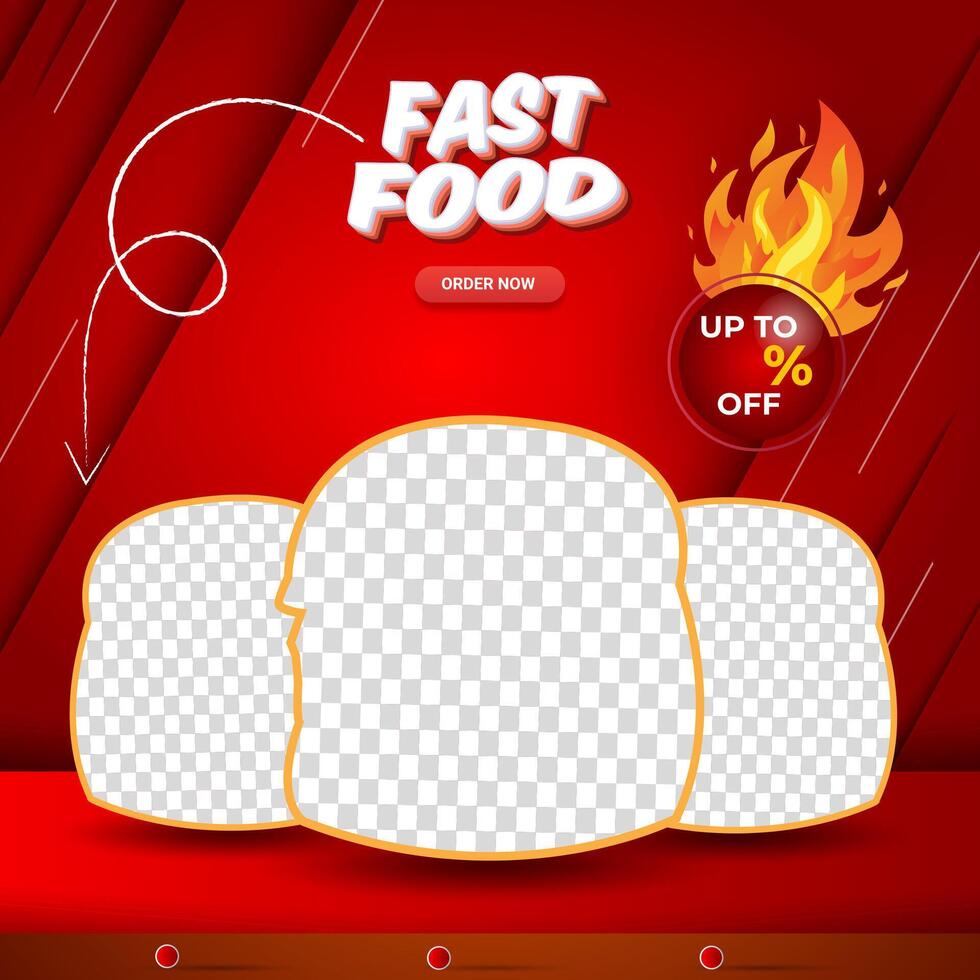 fast food sale discount square banner for social media post with copy space frame for product sale with abstract gradient red background design vector