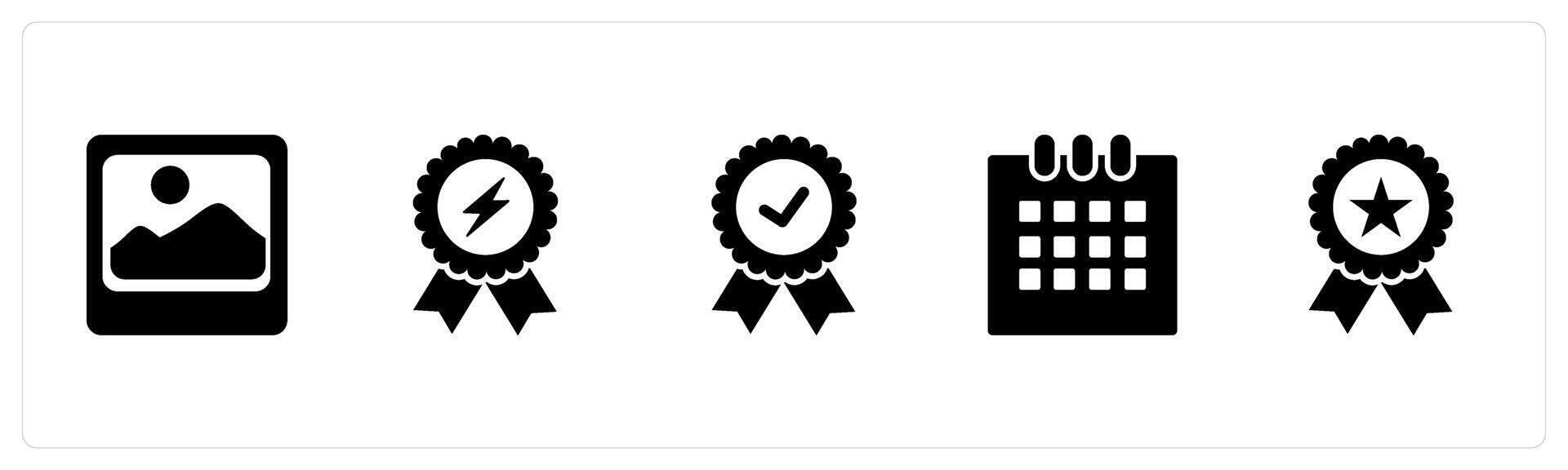 A set of 5 Business icons as gallery, badge with lightning, correct badge Pro Vector