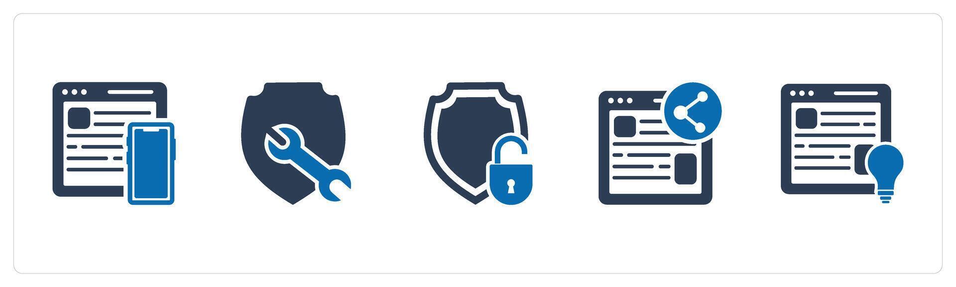 A set of 5 Internet icons as responsive, shield maintenance, security Pro Vector