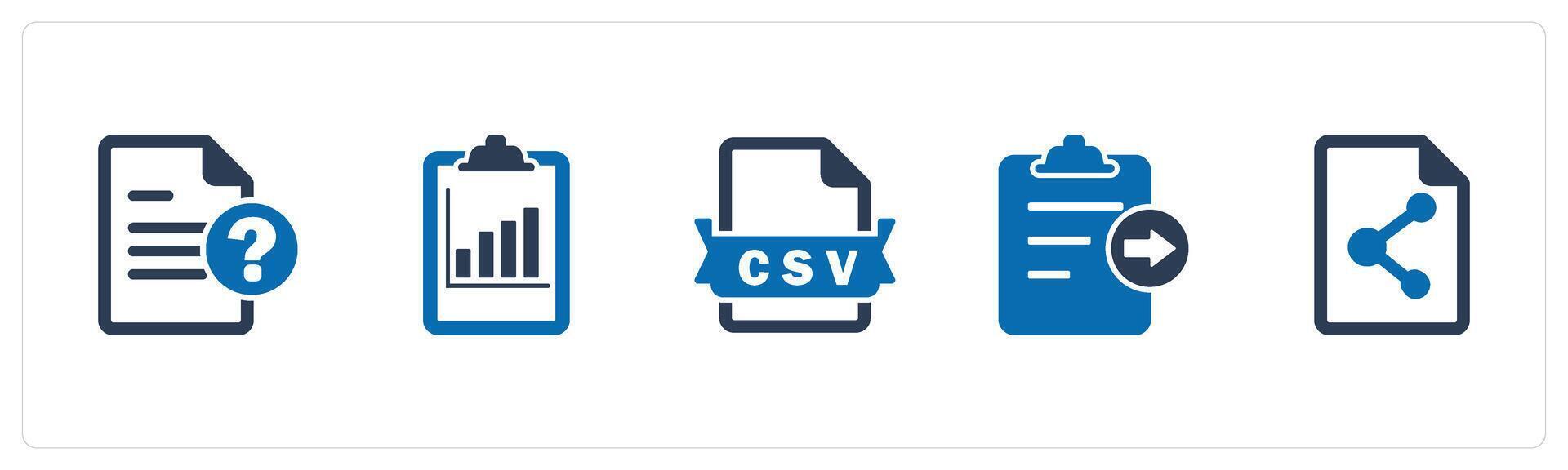 A set of 5 Document icons as question, graph document, csv file Pro Vector