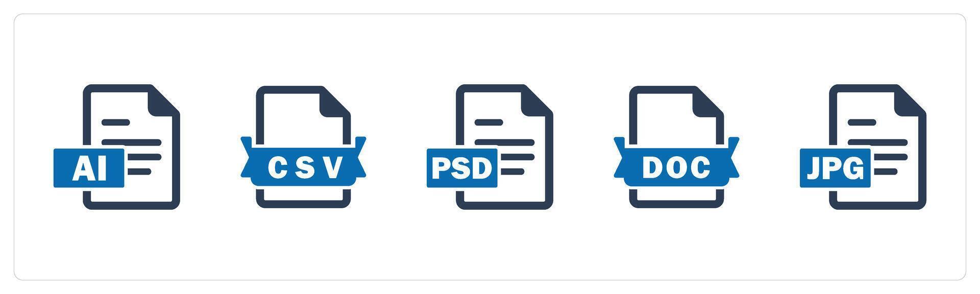 A set of 5 Document icons as ai file, csv file, file Pro Vector
