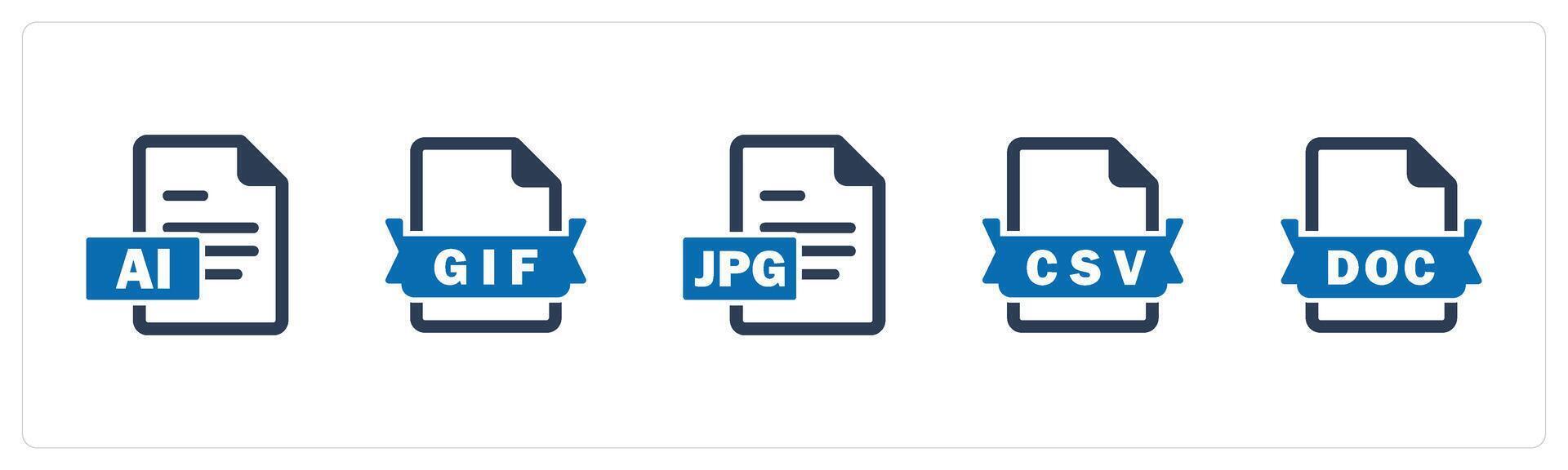 A set of 5 Document icons as ai file, gif file, jpg file Pro Vector