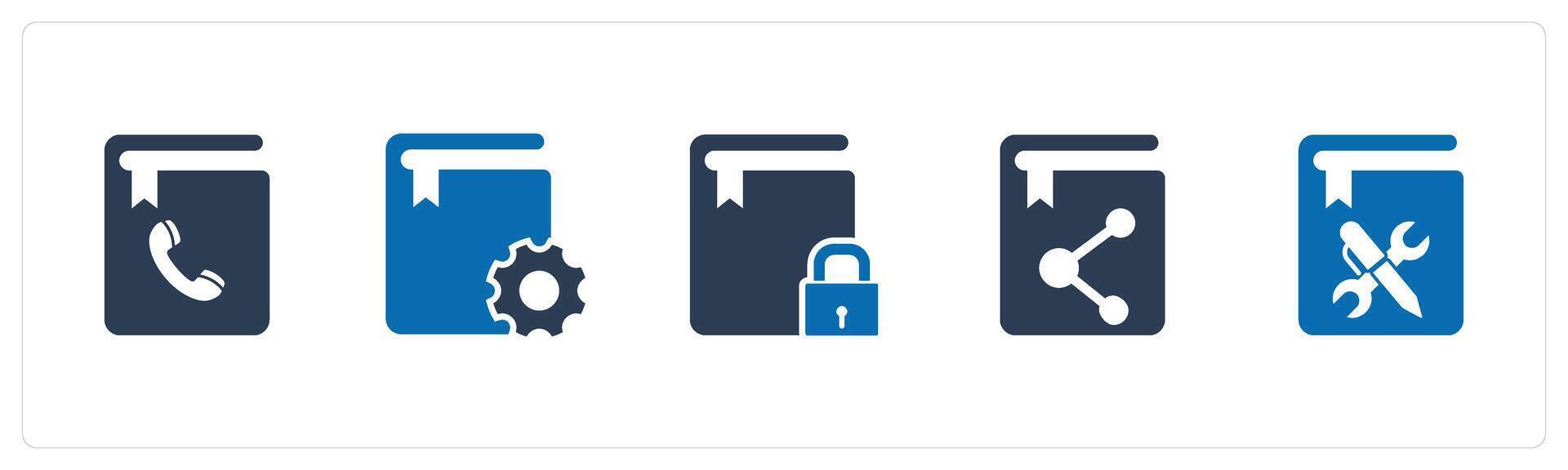 A set of 5 Document icons as contact book, book setting, book security Pro Vector