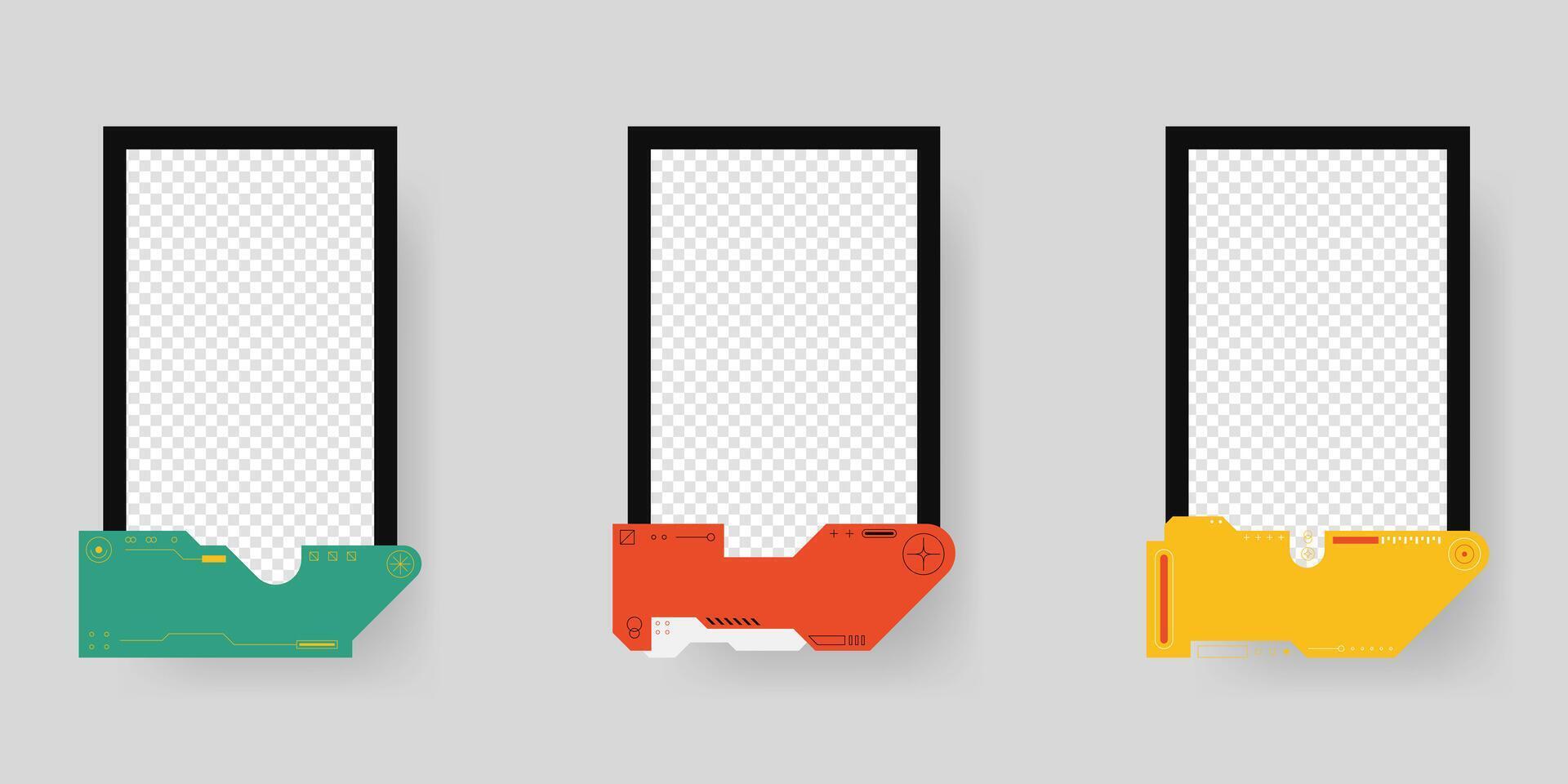Collection of player frames template. Cyberpunk style. Game card frame mockup template design. Pro Vector
