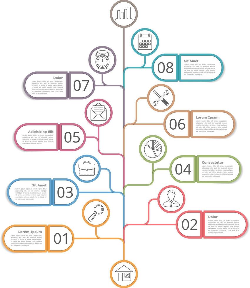 Tree shaped infographics design template with numbers, text boxes and line icons Pro Vector