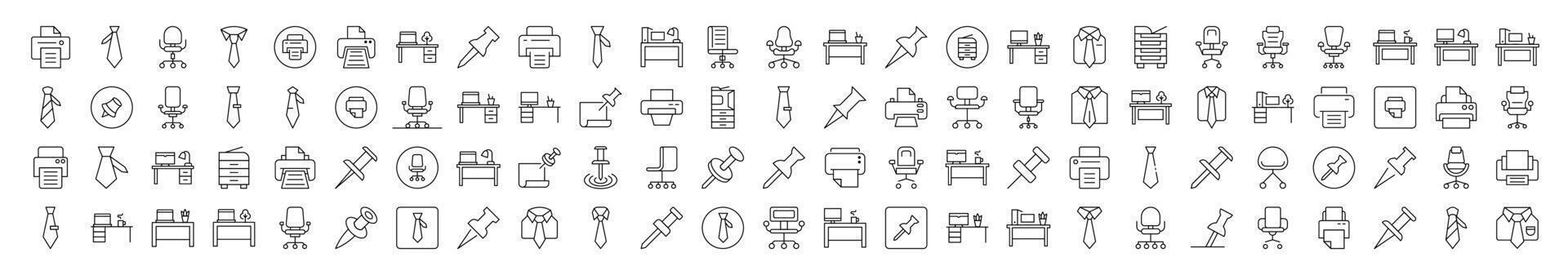 Bundle of Office Related Line Icons. Editable Stroke for Design, Web Sites, Apps, Cards. Contains Linear Images of Push Button, Tie, Workspace Pro Vector