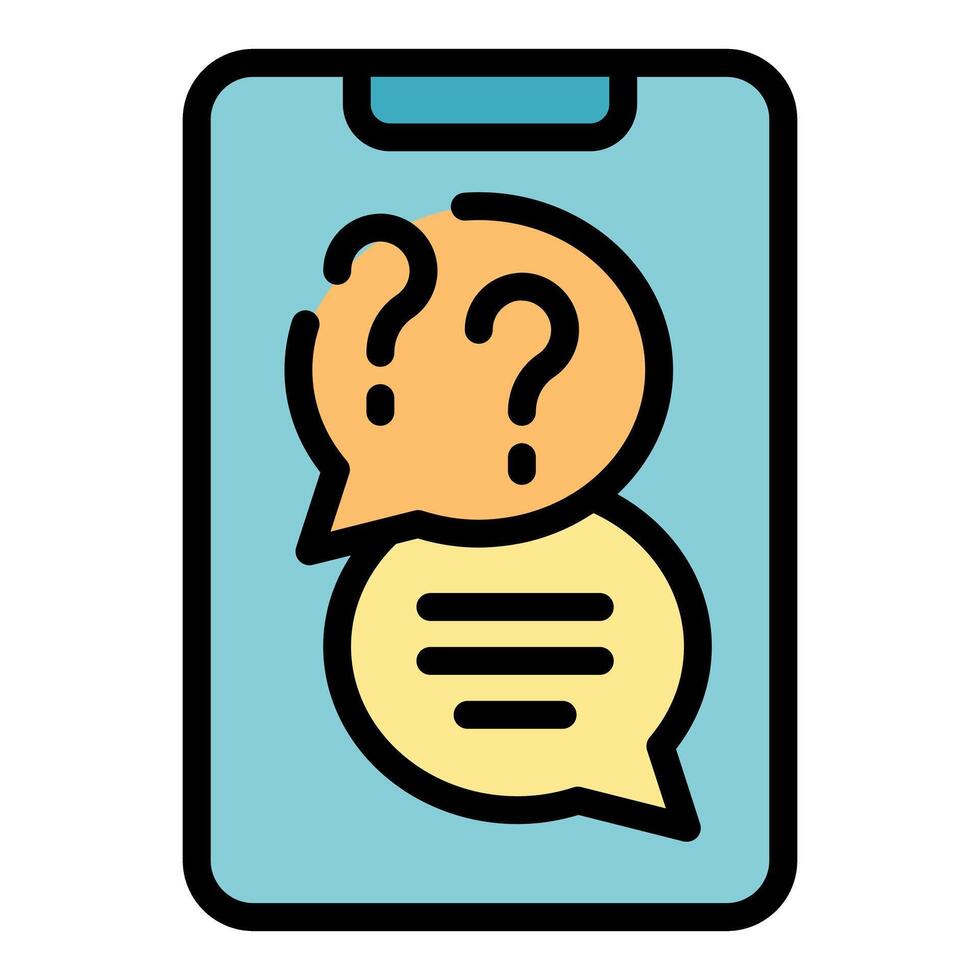 Smartphone displaying chat bubbles with question marks and answer in progress Pro Vector
