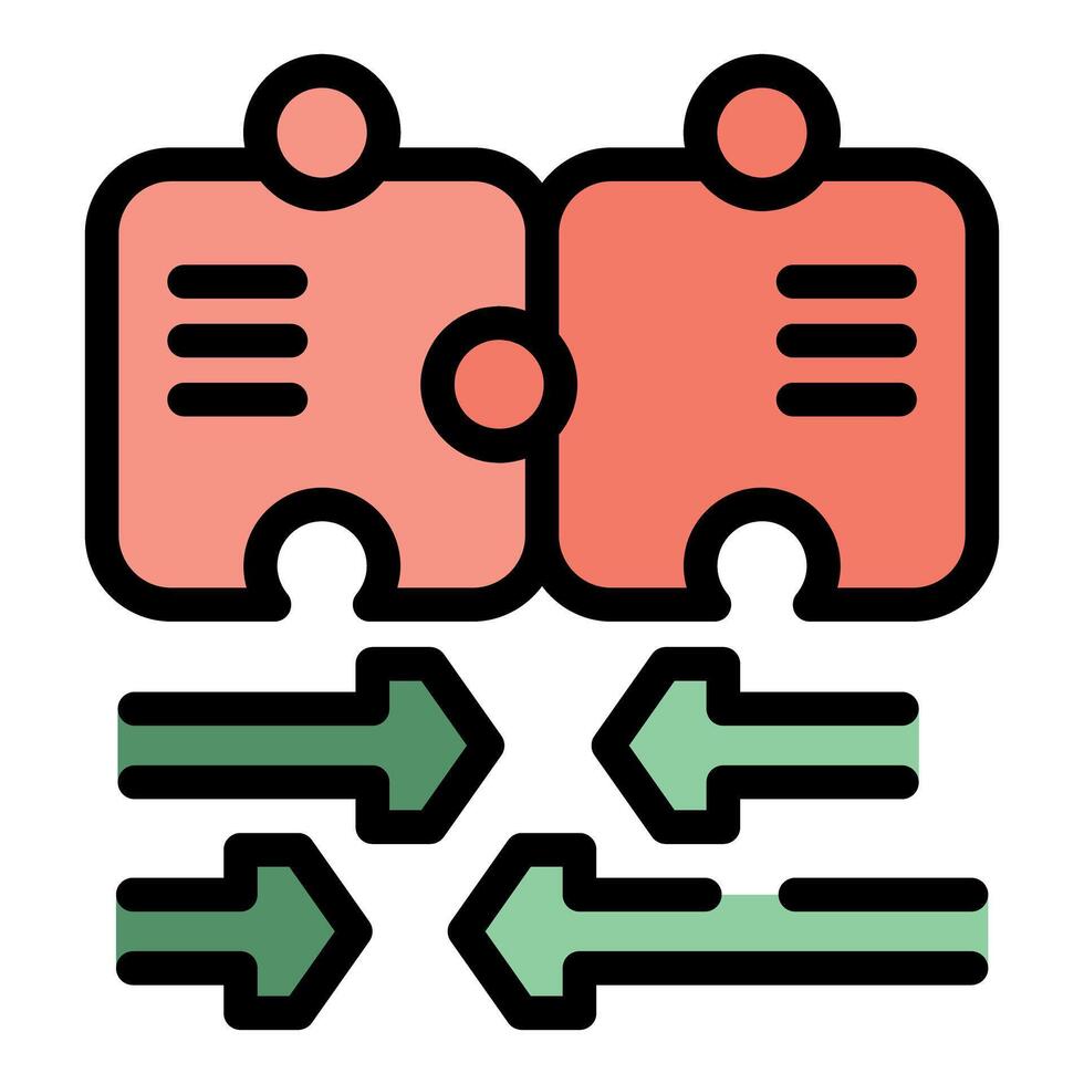 Two puzzle pieces connecting with arrows showing data integration process Pro Vector