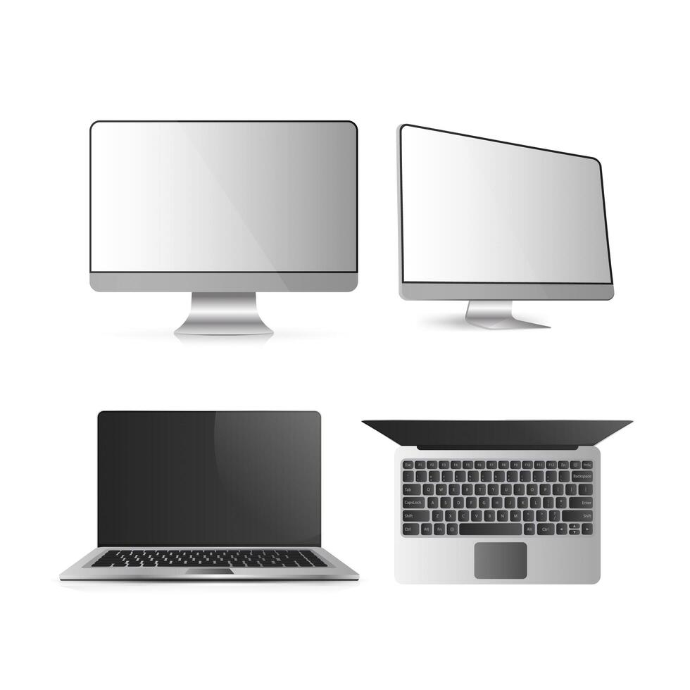 A set of computers. Desktop PC Open laptop. Isolated on a white background. Realistic . Pro Vector