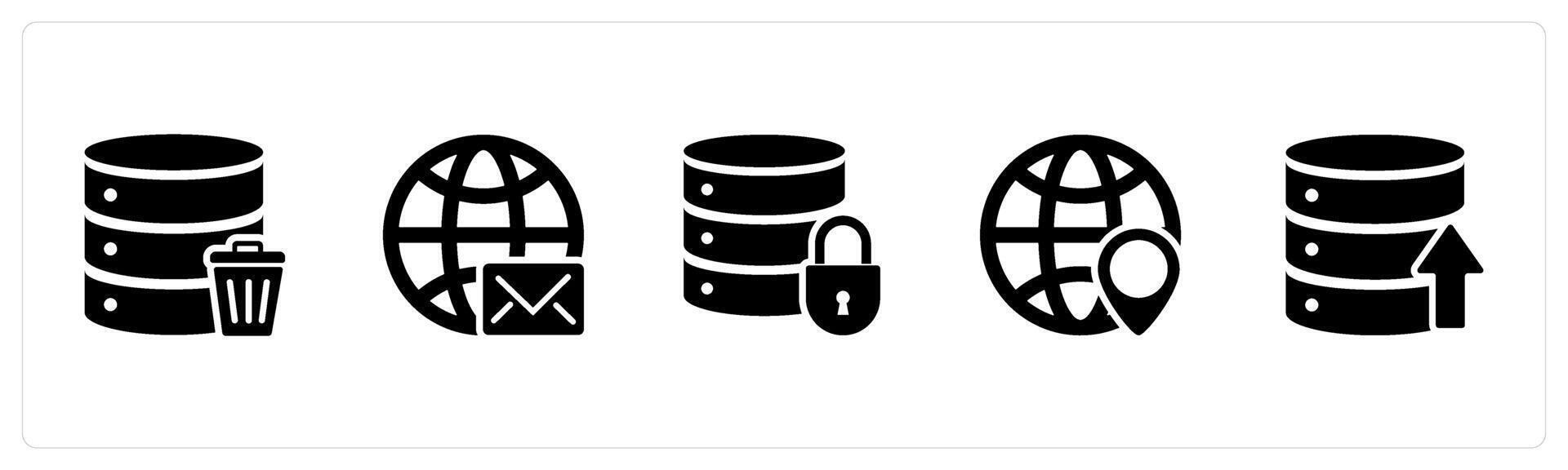 A set of 5 Internet icons as trash server, global message, server security Pro Vector