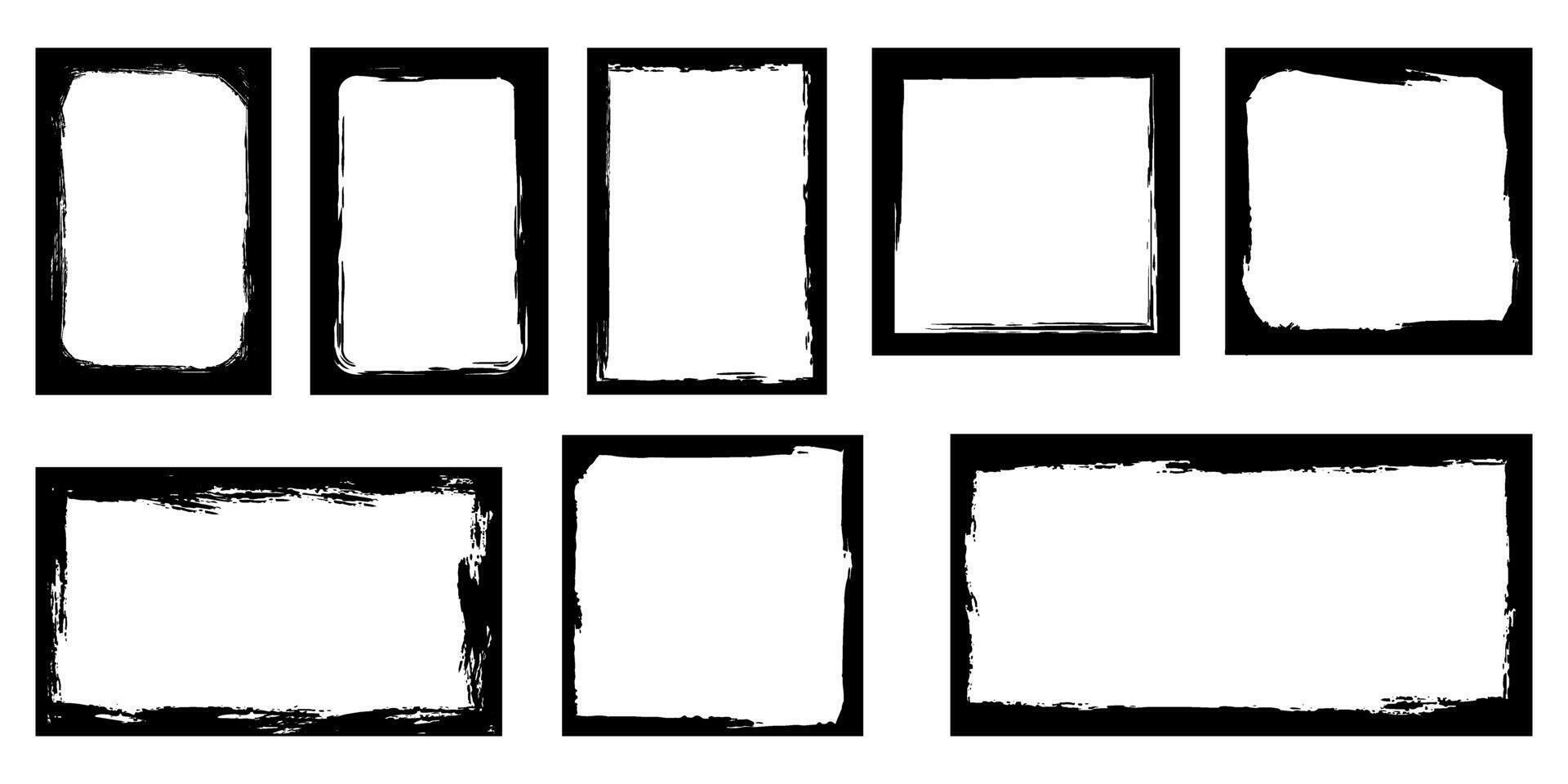 Rectangular grunge frame. Square window with uneven scratched borders. Retro style vignette Pro Vector