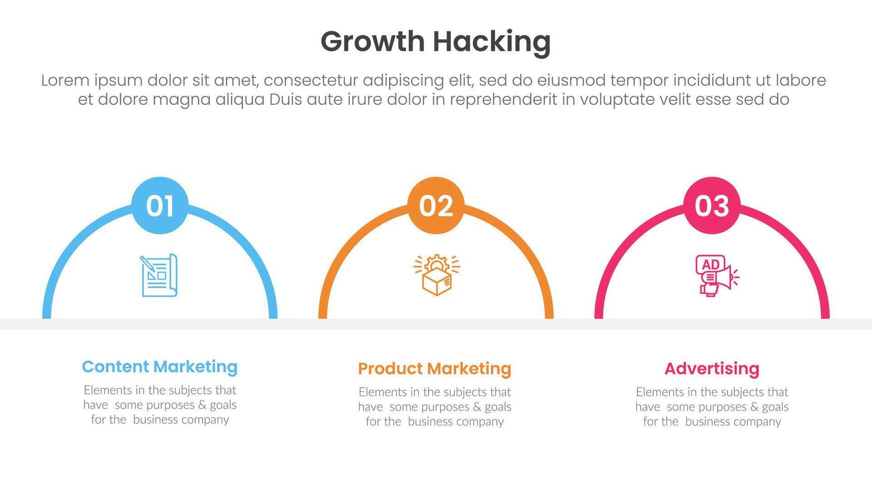 growth hacking infographic 3 point with half circle shape outline for slide presentation Pro Vector