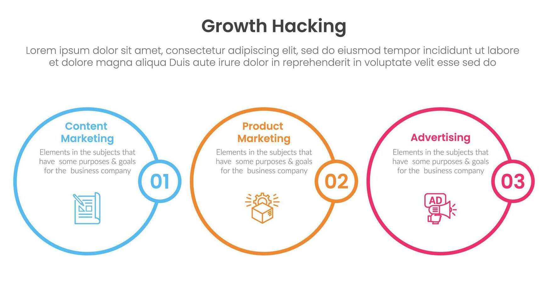 growth hacking infographic 3 point with horizontal outline circle for slide presentation Pro Vector