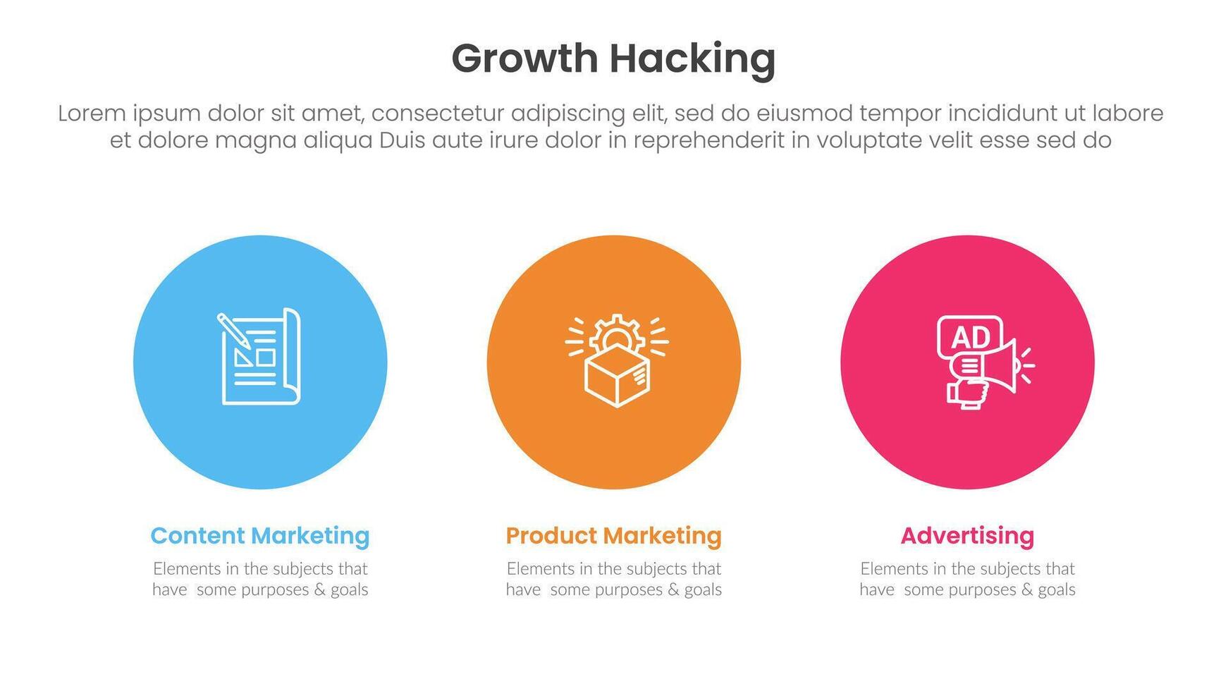 growth hacking infographic 3 point with big circle outline horizontal for slide presentation vector