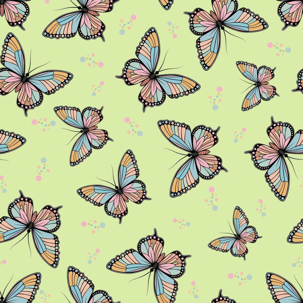 A seamless pattern featuring a butterfly on a yellow-green background, in the boho style. Pro Vector