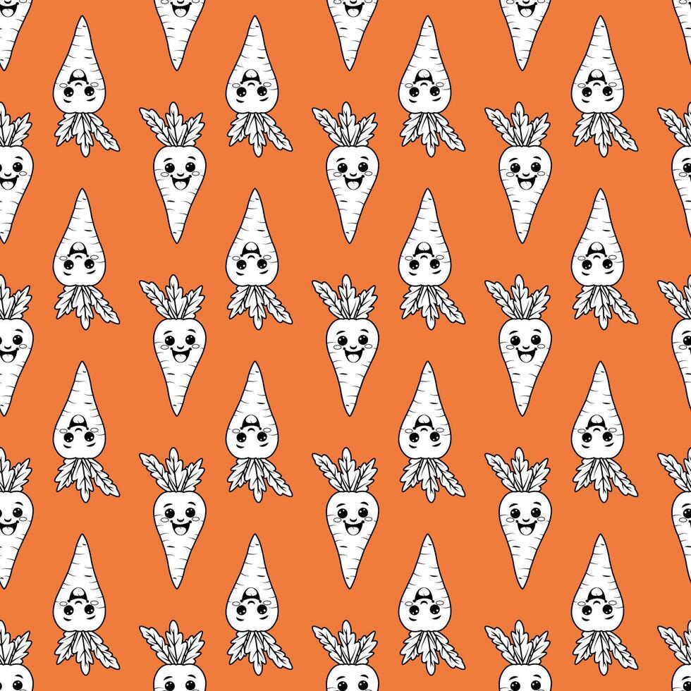 Seamless pattern with fun carrots. A pattern featuring contoured carrots.orange background Pro Vector