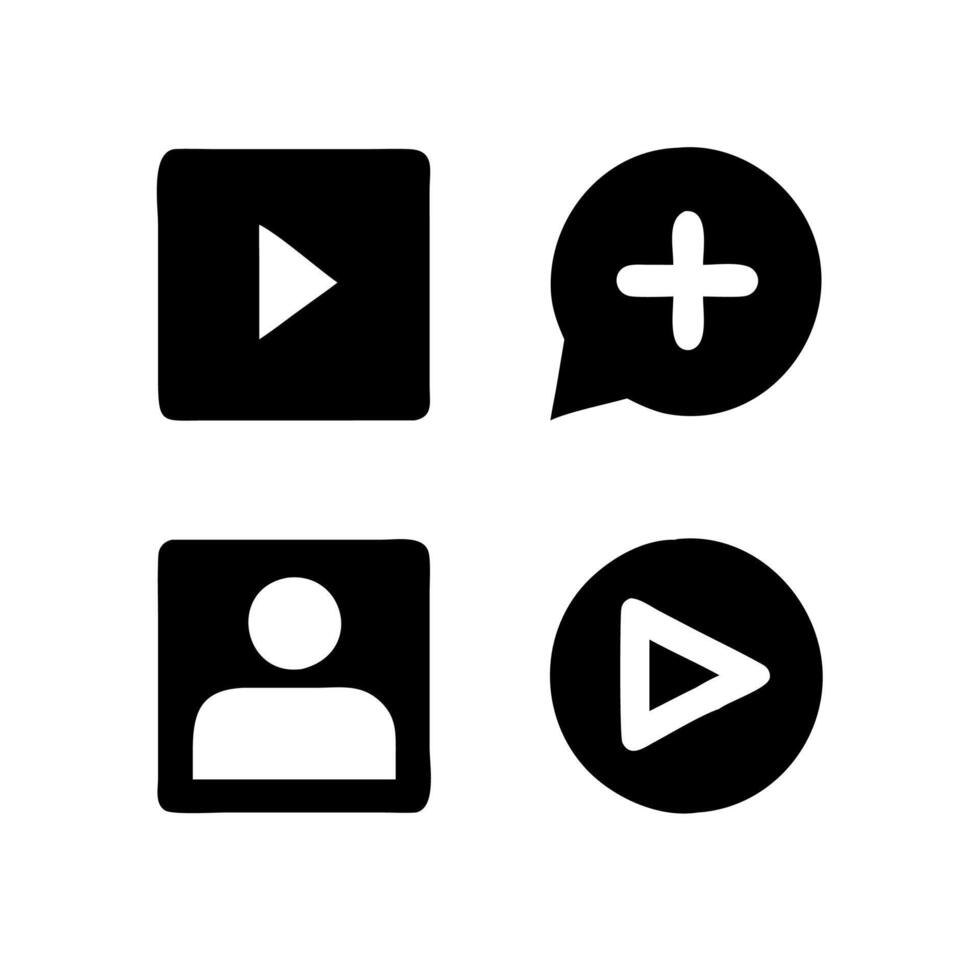 A set of four icons that include a player, a play button, a play button and Pro Vector