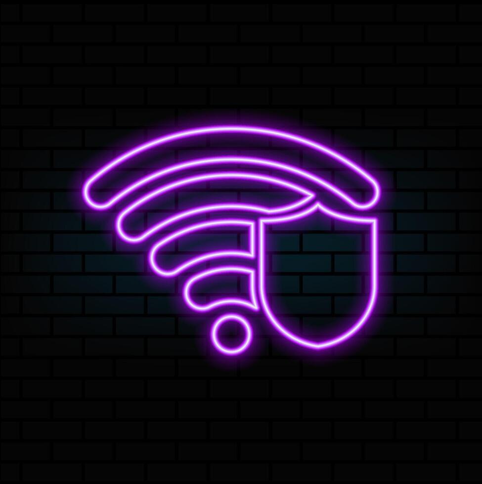 Set line Key, Lock on computer monitor screen and Shield with WiFi wireless internet network icon. Glowing neon. Pro Vector