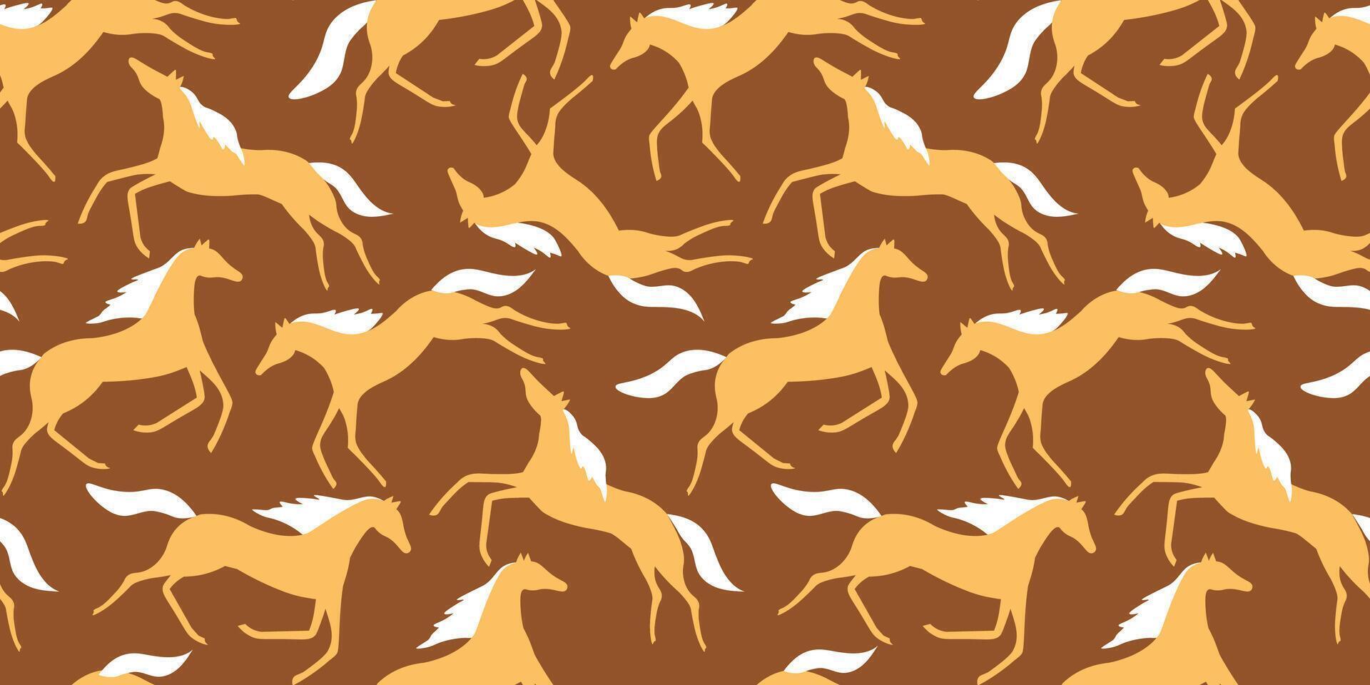 Seamless pattern with abstract silhouettes of running horses randomly located on a monochrome background. vector