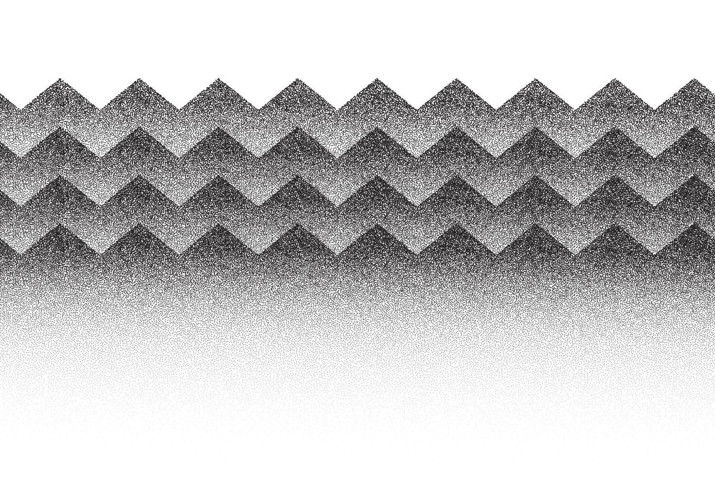 Wavy pattern with stipple texture. Dotted abstract noisy background with sans gradient. Halftone sea curve zigzag illustration. Striped wallpaper with sand effect. Pro Vector
