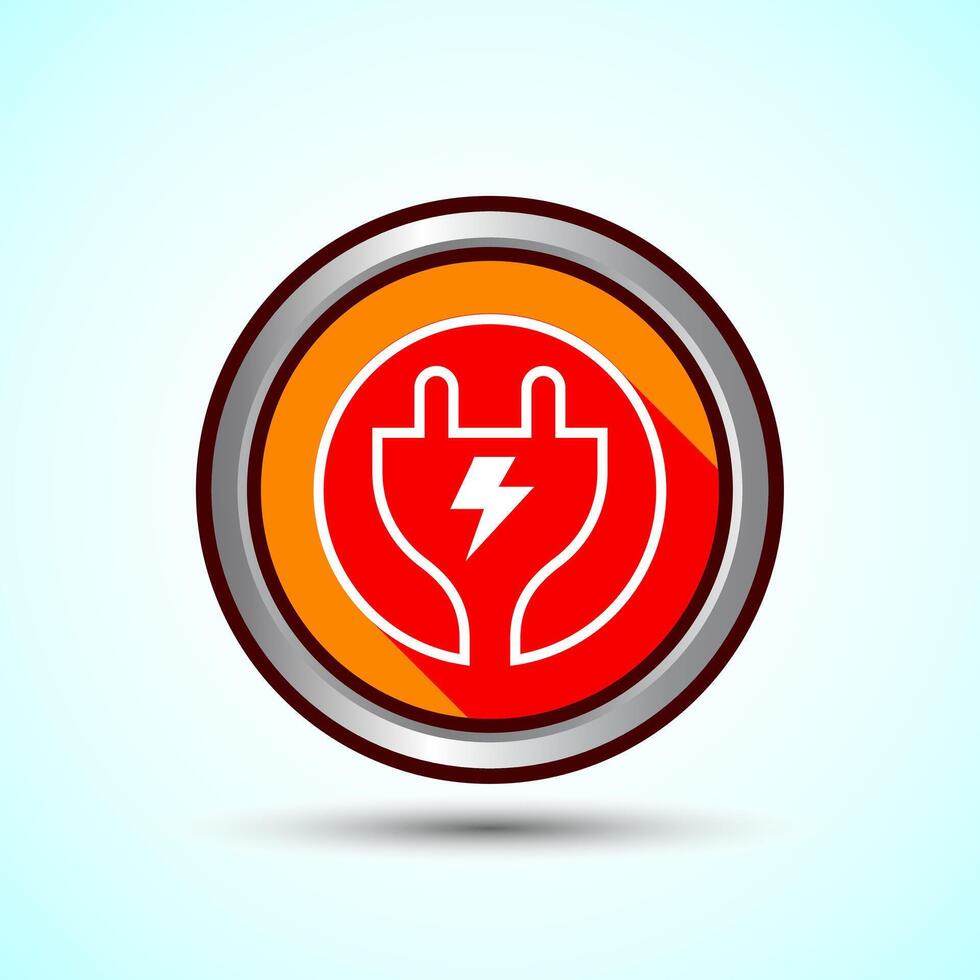 Electricity, Power, Plug Icon Design Illustration, Icon For Web and mobile application, Orange Shadow Button Design Free Vector