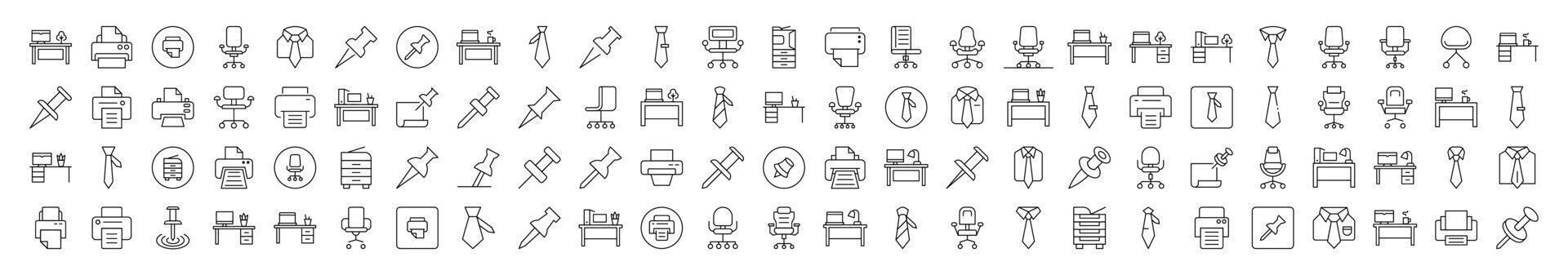 Office Line Icon Set. Modern Collection for Design, Web Sites, Apps, Cards. Contains Linear Images of Push Button, Tie, Workspace Pro Vector