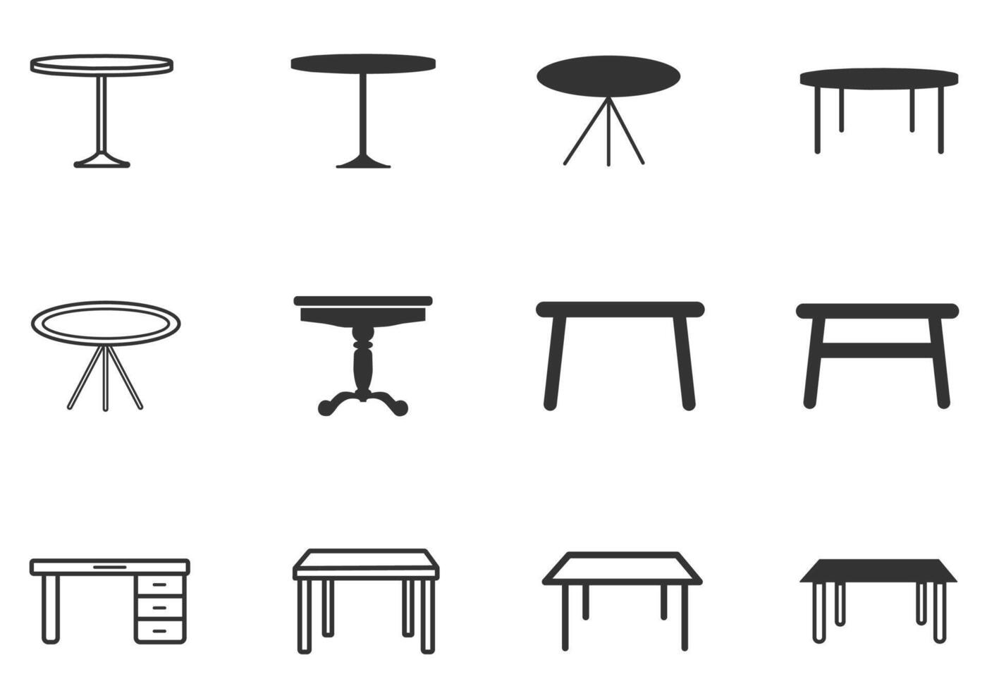 table icon. Set of table, Folding table icon, Round table with chairs icon. Pro Vector