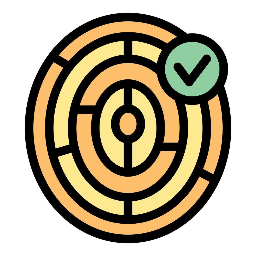 Round maze puzzle with check mark showing solution icon Pro Vector