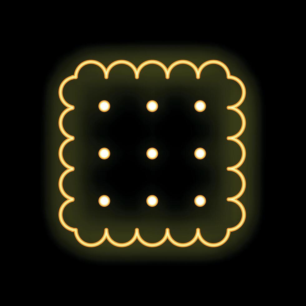 Yellow neon sign of square cracker with rounded edges glowing in the dark Pro Vector