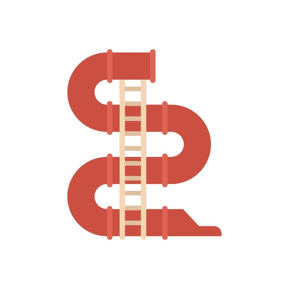 Red double slide with ladder for playground equipment is standing on white background Pro Vector