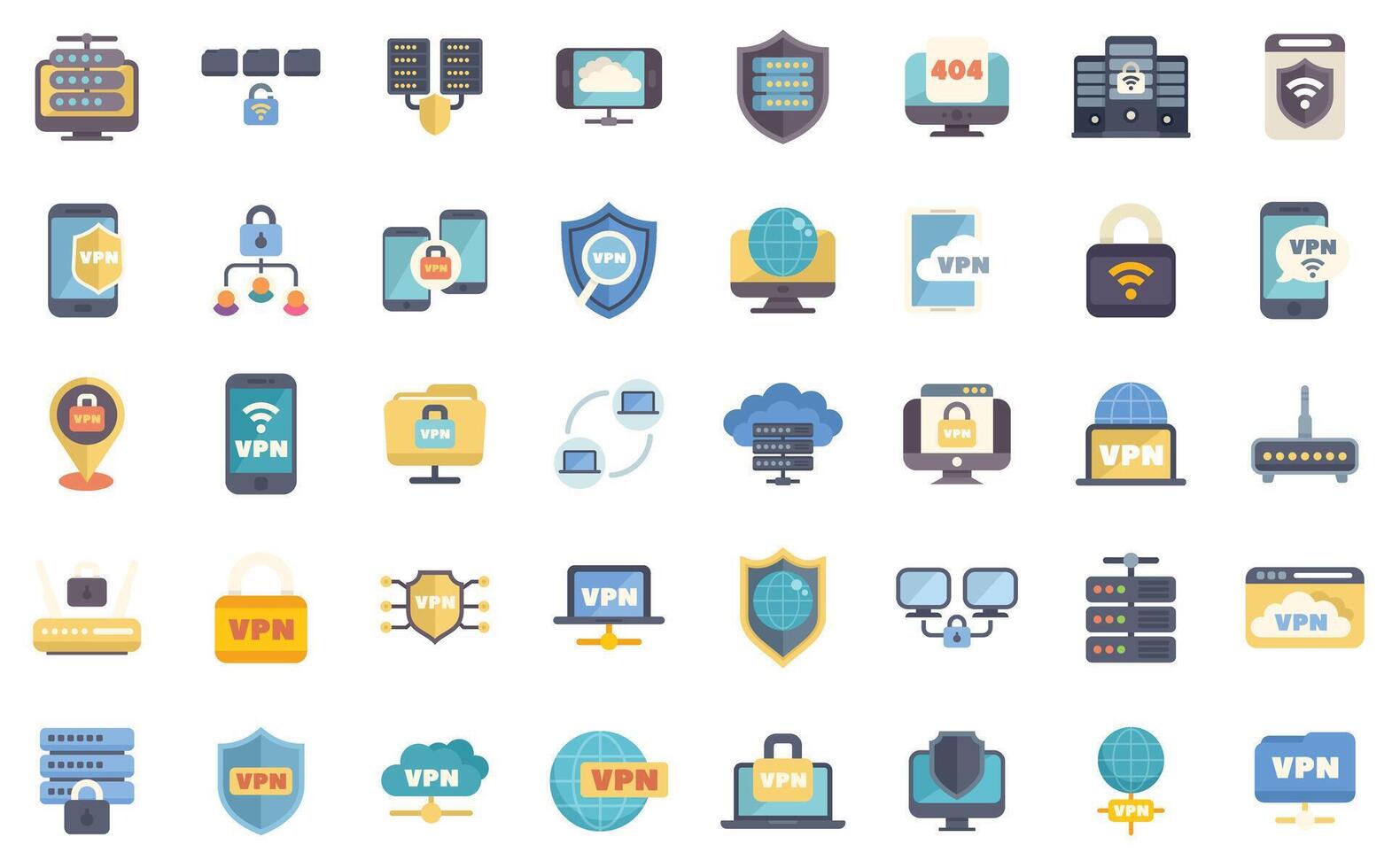 Set of vpn icons showing virtual private network, secure connection and privacy Pro Vector