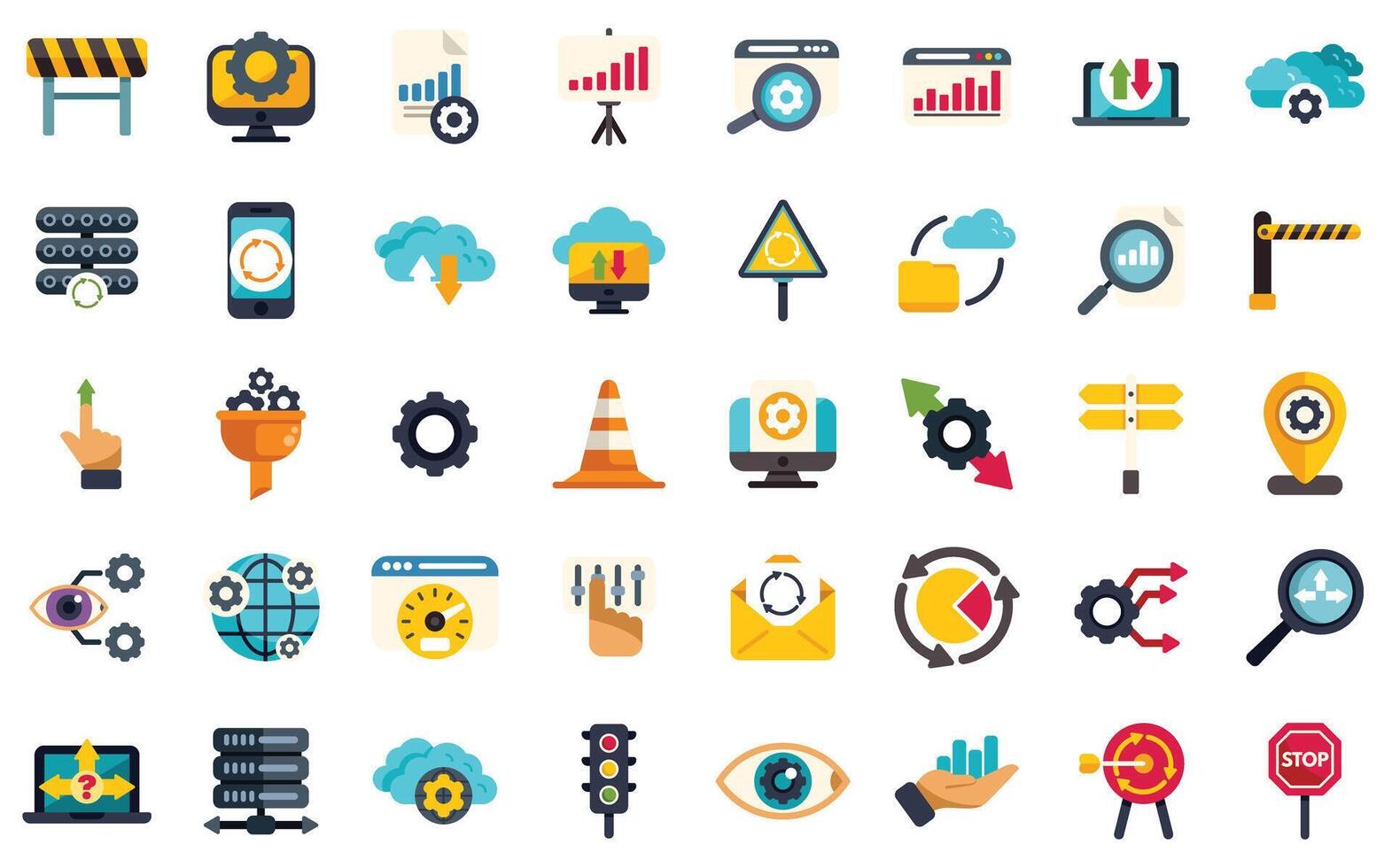 Workflow optimization and process management icons showing continuous improvement and automation Pro Vector