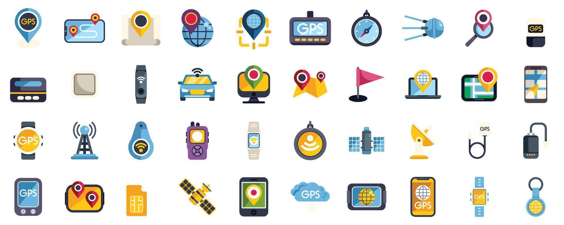 Global positioning system icons showing navigation and tracking technology Pro Vector